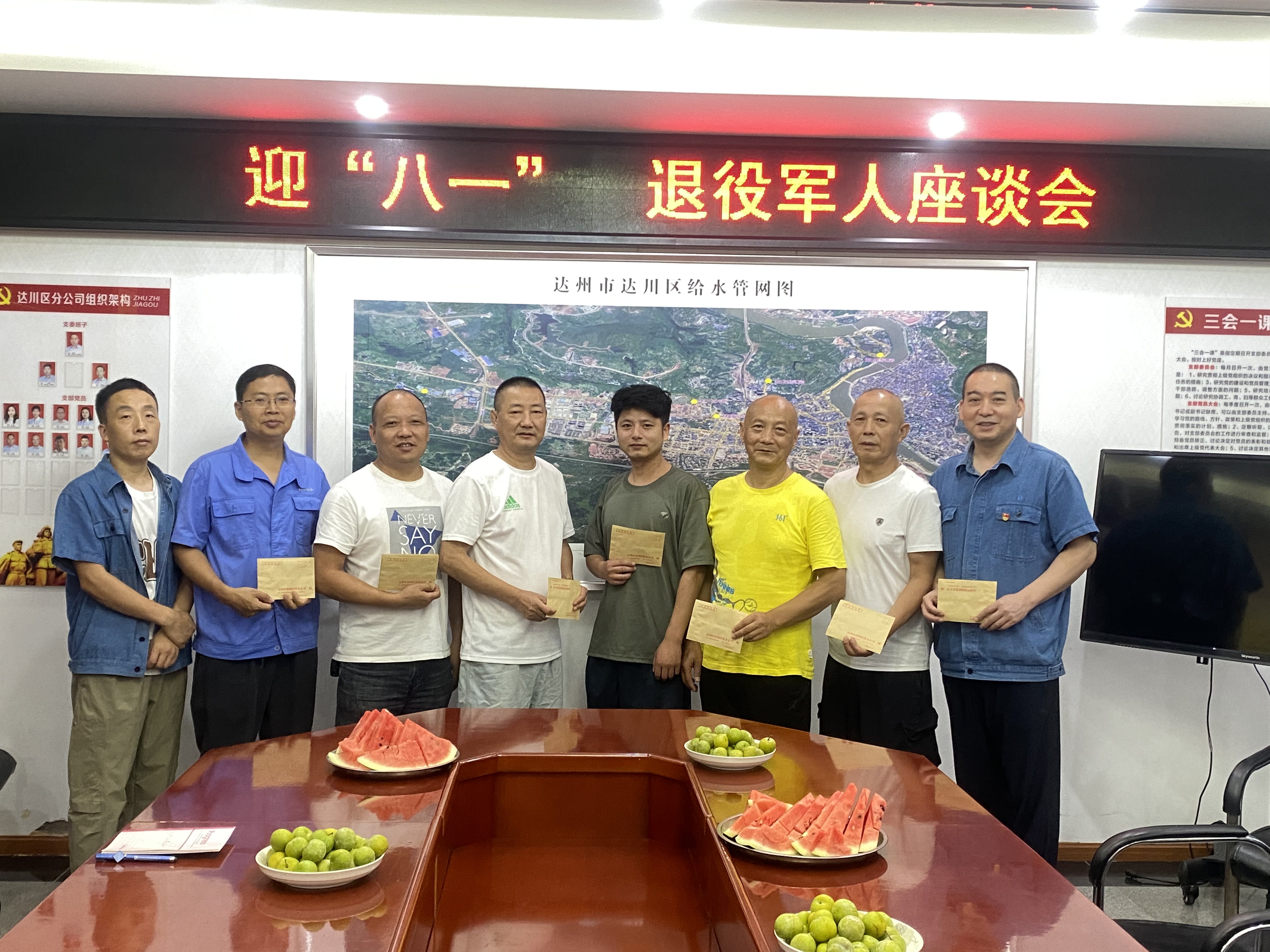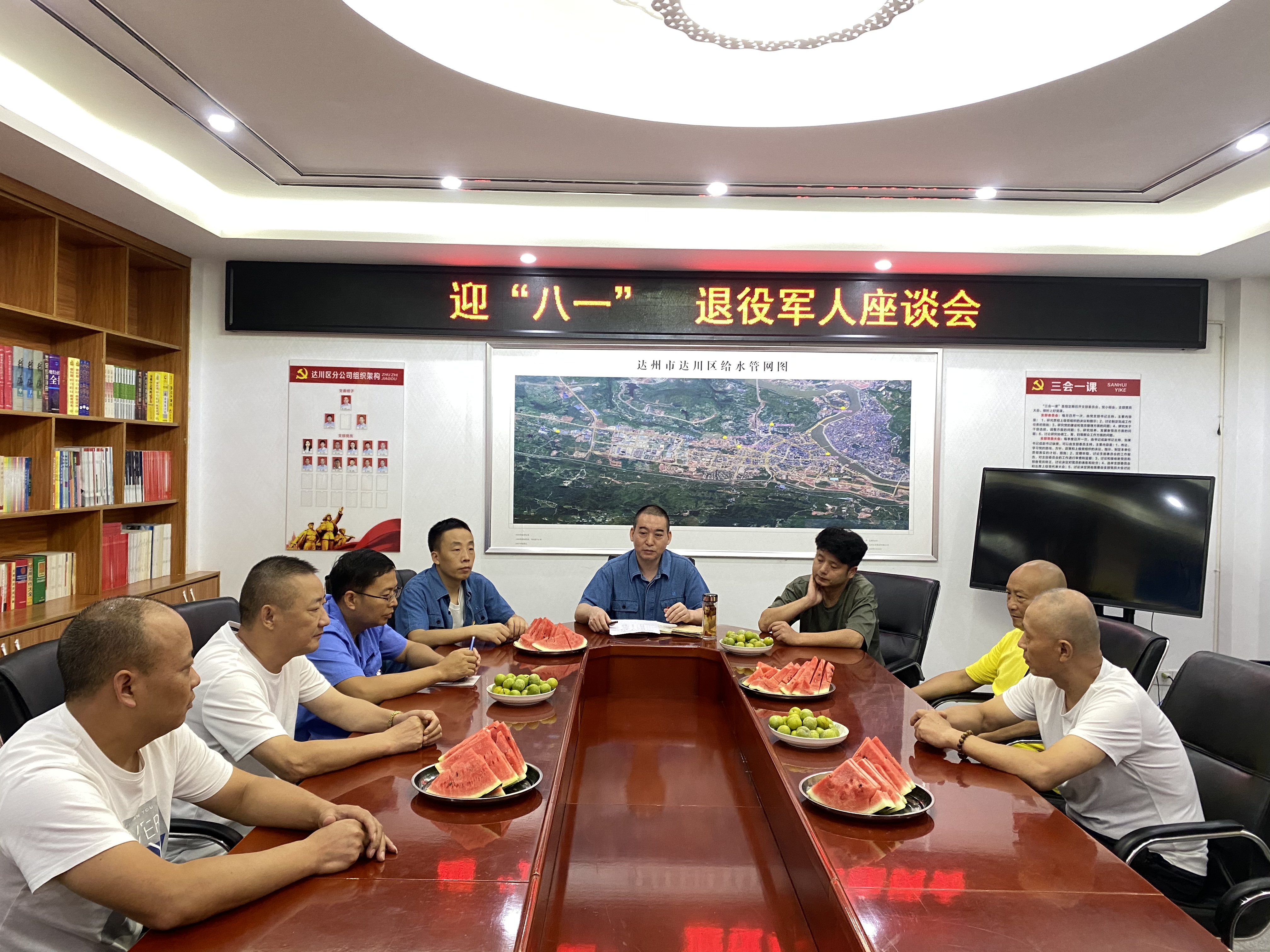“八一”是彩色的,是軍旅迷彩,是愛國紅,是橄欖綠,當然也可以是水務(wù)藍。為了學習和推崇退役軍人身上的寶貴品質(zhì),并將集團黨委對退役軍人的關(guān)懷傳達到每一個退役老兵,7月31日上午,達川區(qū)分公司召開了慶祝建軍97周年“八一”座談會,支部書記卿仕明與支委班子一道同分公司的退伍軍人們共聚一堂,歡慶“八一建軍節(jié)”。