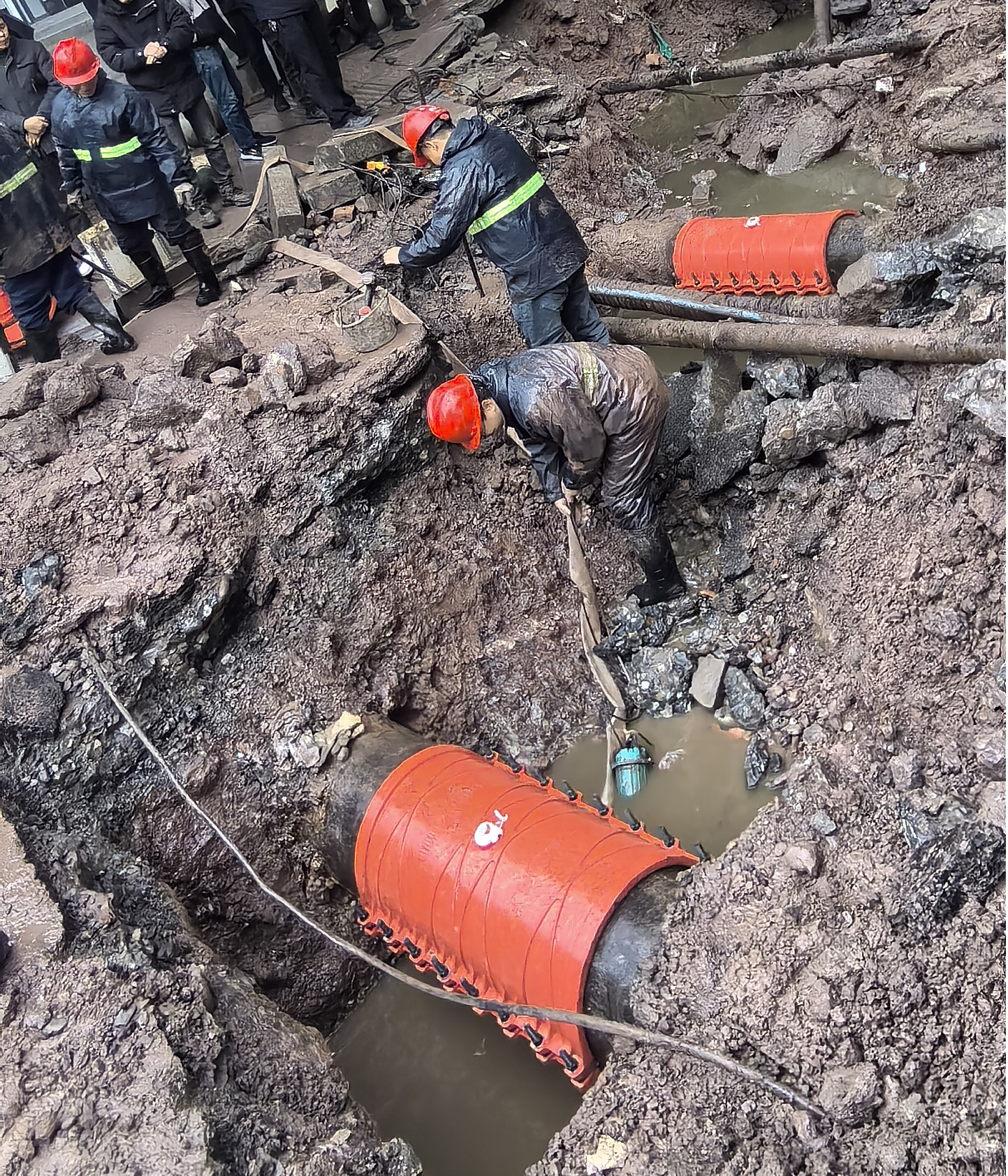 部門(mén)多方聯(lián)動(dòng)、協(xié)調(diào)配合有序推進(jìn)搶險(xiǎn)工作。6時(shí)20分,搶險(xiǎn)人員迅速趕赴事故現(xiàn)場(chǎng),第一時(shí)間關(guān)閉主閥門(mén),有序展開(kāi)搶險(xiǎn)作業(yè)。北外分公司負(fù)責(zé)實(shí)施關(guān)排水、倒閥門(mén)、送水等工作,安裝公司主導(dǎo)搶險(xiǎn)具體作業(yè)。同時(shí),達(dá)川區(qū)分公司、供水生產(chǎn)部、物資公司等部門(mén)第一時(shí)間給予物資調(diào)撥、車輛協(xié)調(diào)、供水調(diào)配等供水綜合保障。